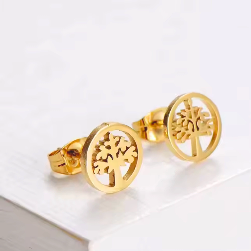 Hermoso set de joyería con diseño del Árbol de la Vida, compuesto por un collar con cadena fina de 45 cm y un dije redondo calado de 1.8 cm, acompañado de unos aretes a juego de 1 cm. Ideal para regalar o consentirse, perfecto para ocasiones especiales como fiesta, boda o evento elegante. Su estilo simbólico y sofisticado lo convierte en un accesorio versátil que enriquece cualquier look.